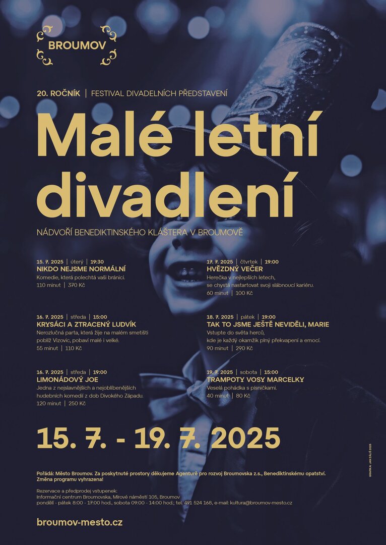 Město Broumov, Benediktinské opatství a Agentura pro rozvoj Broumovska zvou srdečně na další ročník Malého letního divadlení, festivalu divadla na nádvoří benediktinského kláštera.